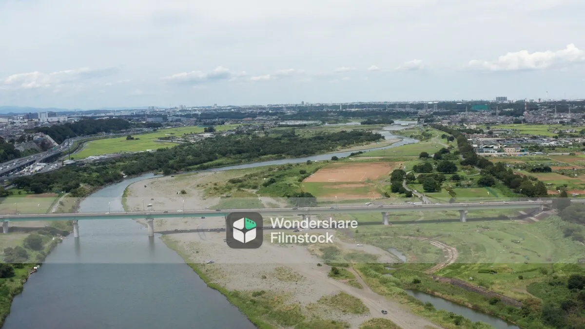 高い処から町や畑を見る