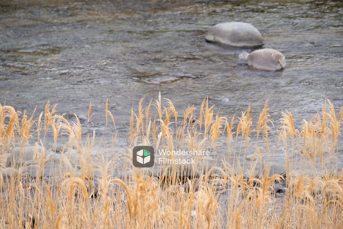 小川の近くに生えるすすき