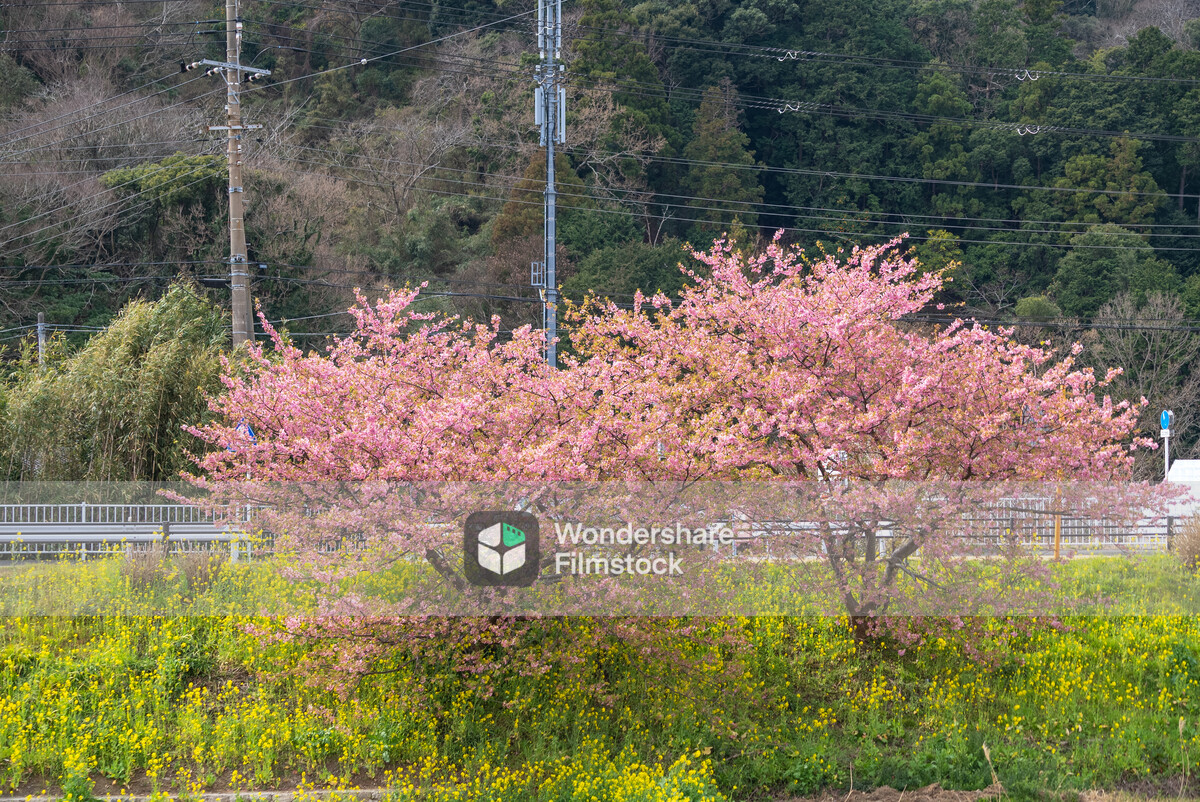 菜の花に囲まれた河津桜