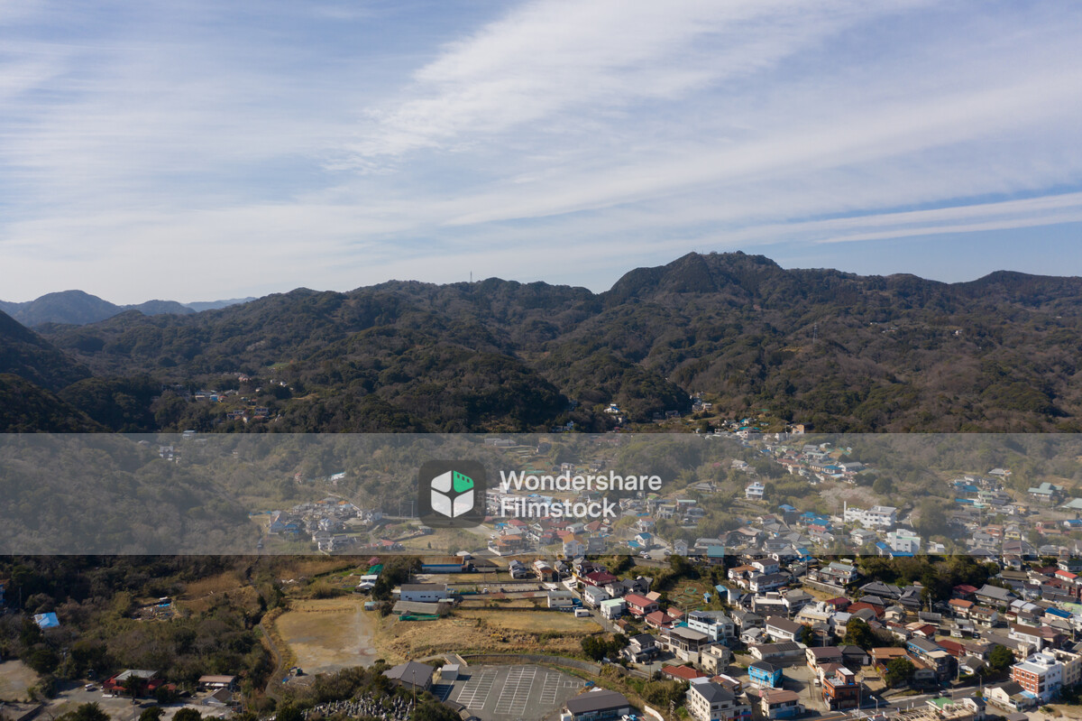 白浜海岸の海と山に囲まれた街並み