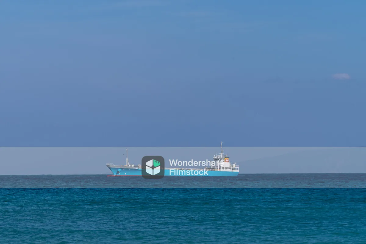 青い空と青い海に挟まれた青い船