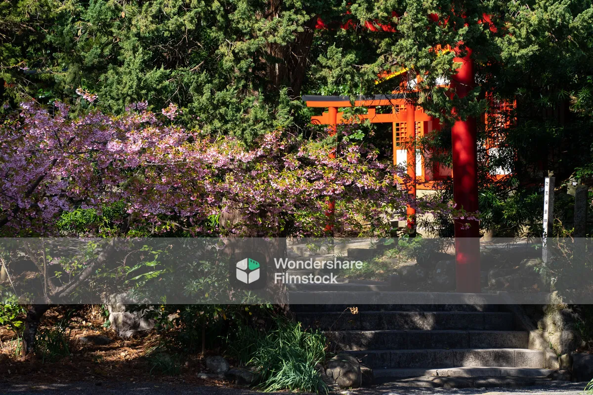 白浜海岸近くの鳥居と桜の花