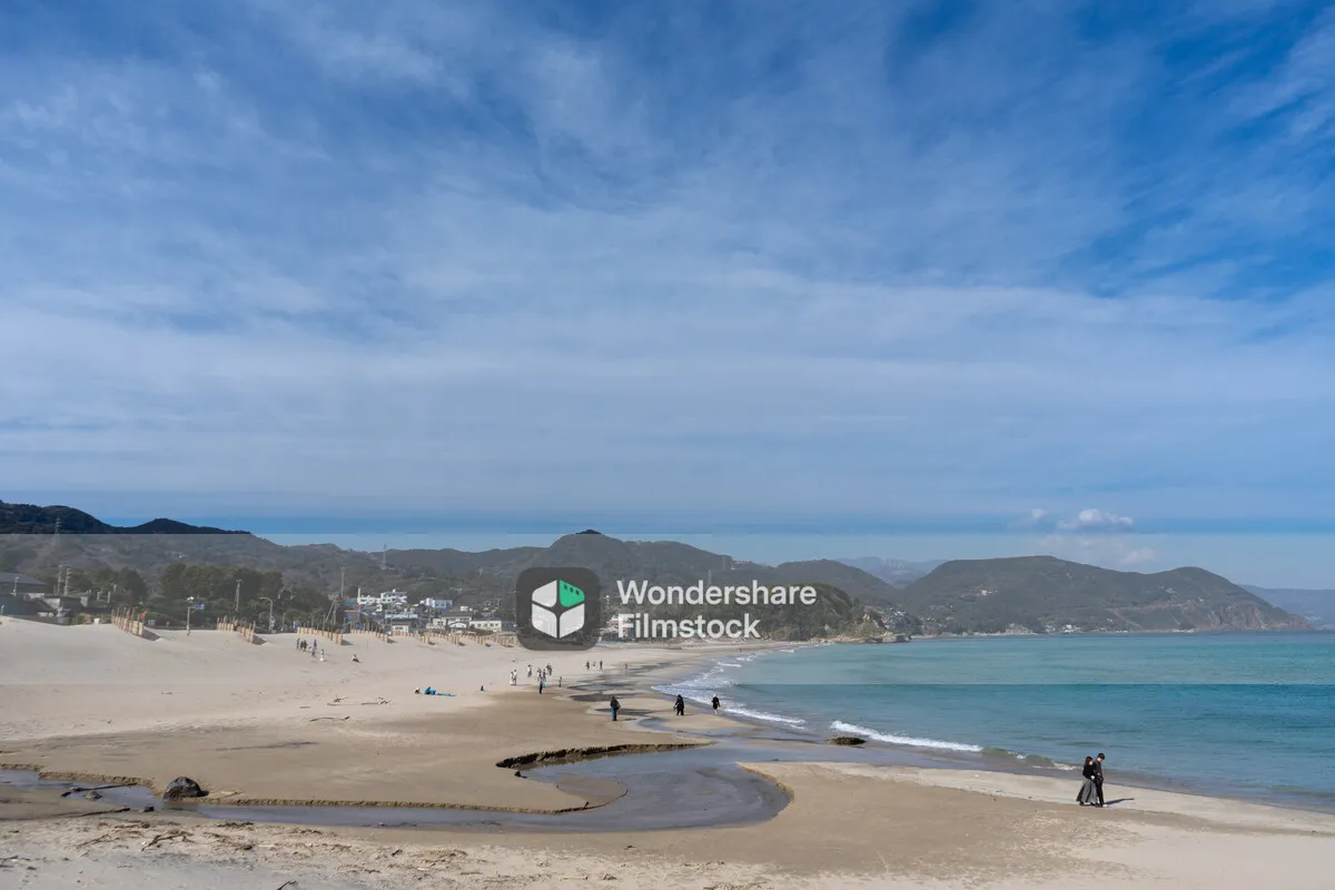 白浜海岸のビーチを散歩する人々