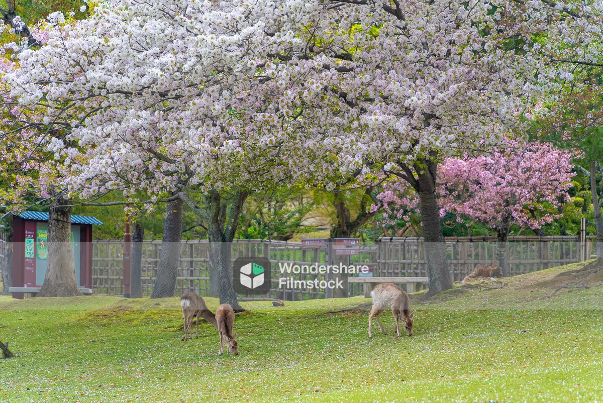 散る桜と鹿