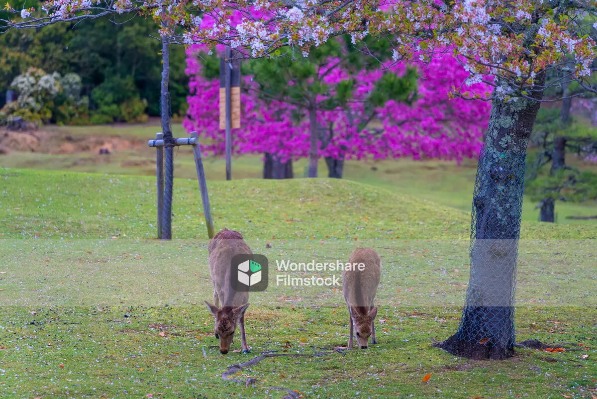 こぼれ桜と鹿