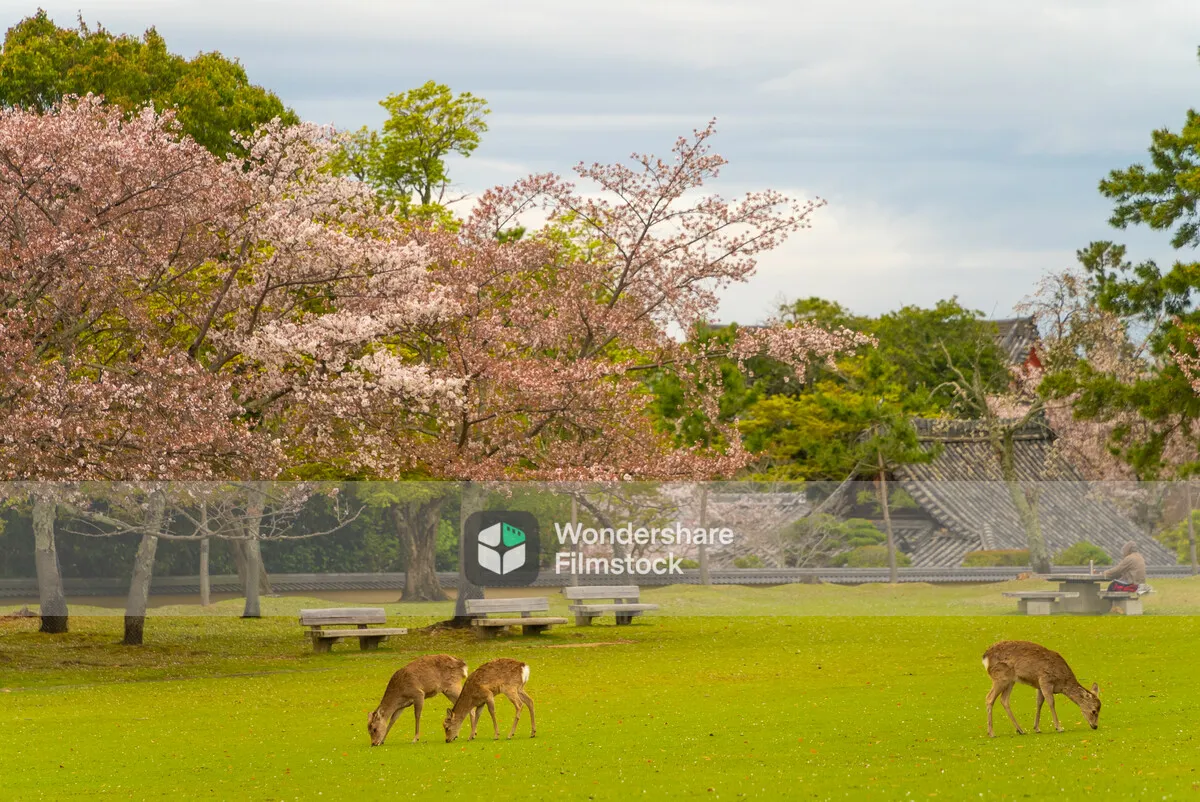 桜と鹿