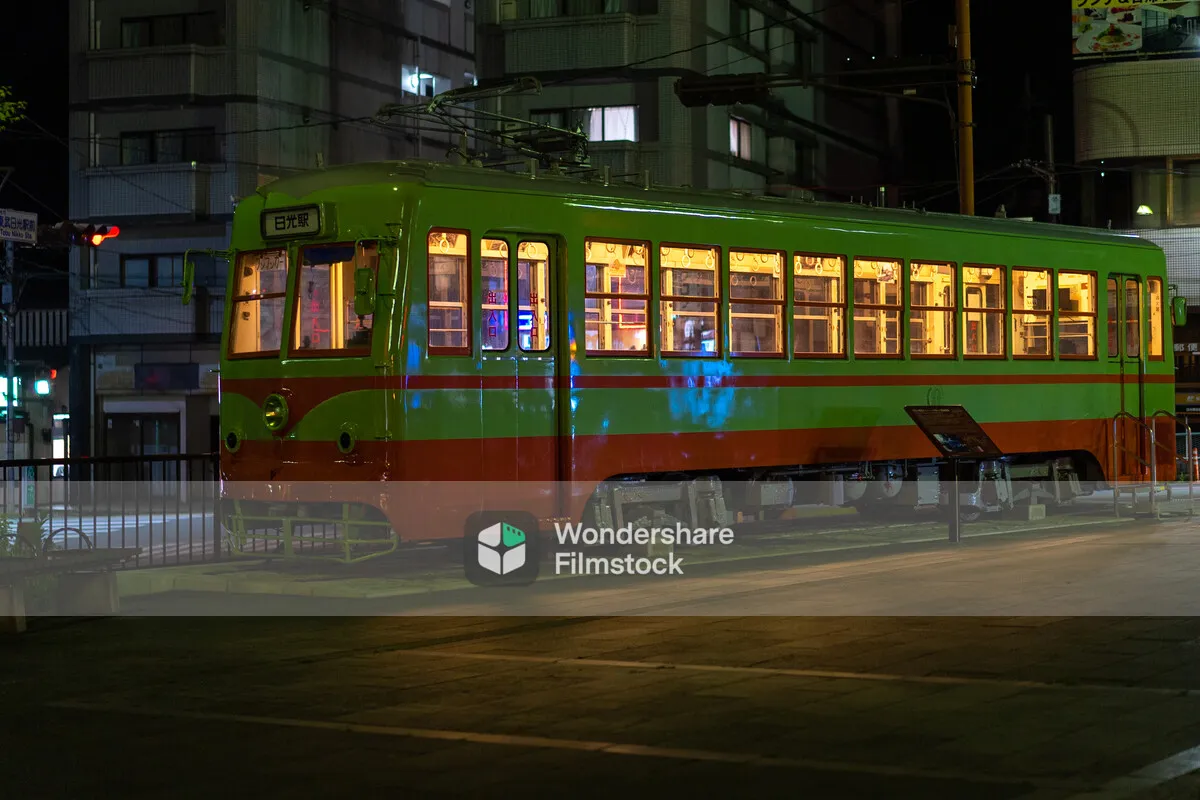 バスに電気がついている
