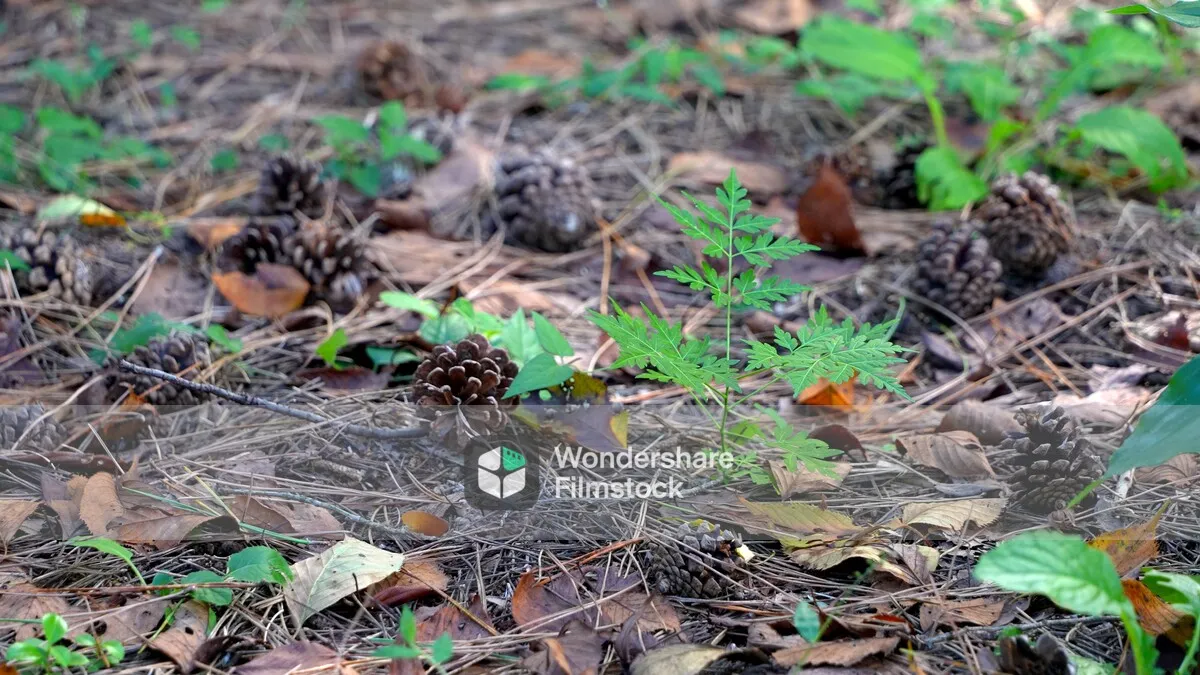 秋時松木から地面に落ちた実