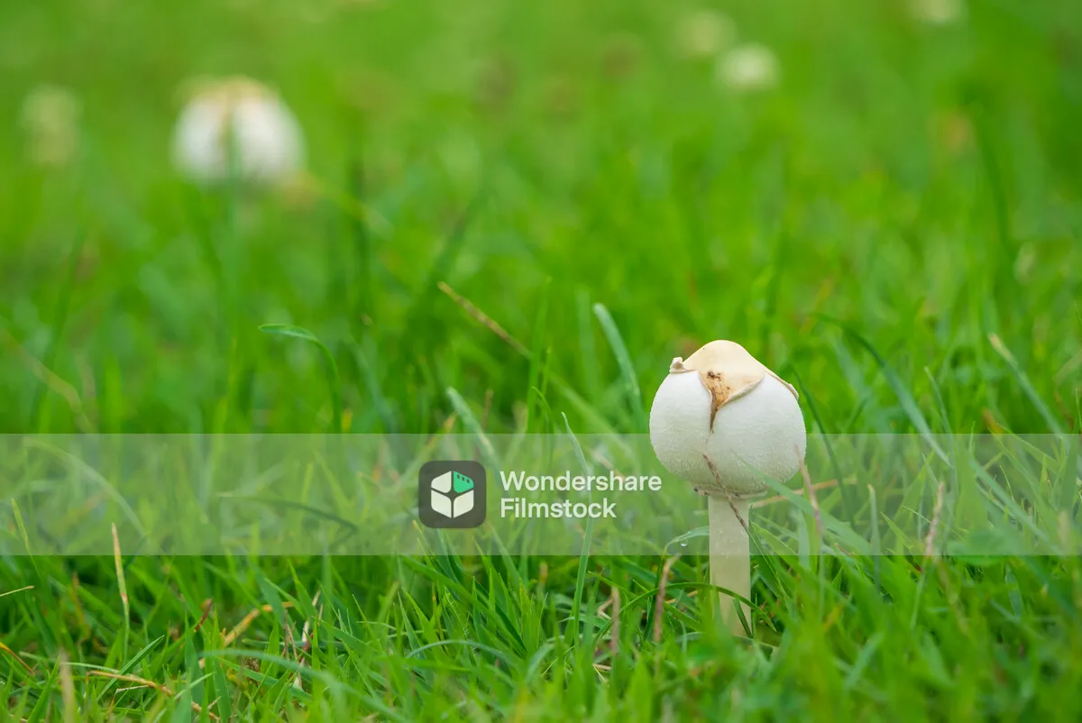 草むらの中の丸いキノコ